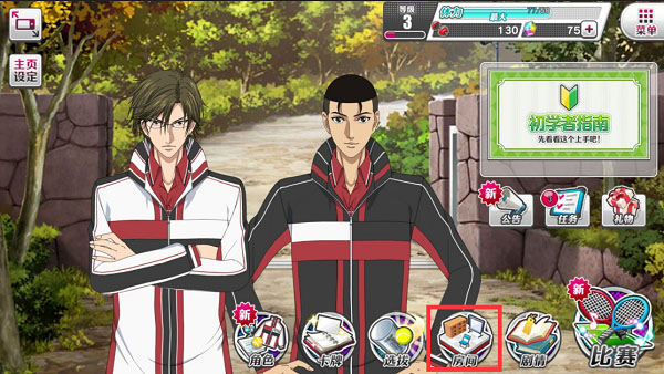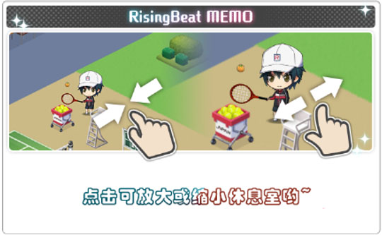 2.现在,就让我们在手冢部长与大石副部长的注视下,一同进入其中一探究竟吧。。主界面点那个房间图标就能进休息室。