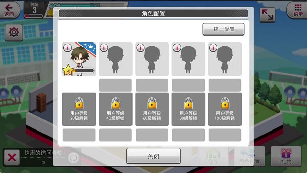 9.角色配置——把你喜欢的队员拉进休息室。刚开始能放5个人,后面每升20级多一个坑,最多能塞10个大男人进去。