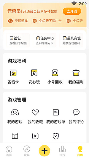 1、第一步,在应用的主界面上仔细查找,找到并点击写着【云游戏】的那个功能板块。