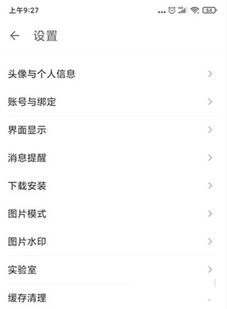 先到“我的”个人中心页面,往下滑找到“设置”,里面有个“图片水印”的选项,点它。