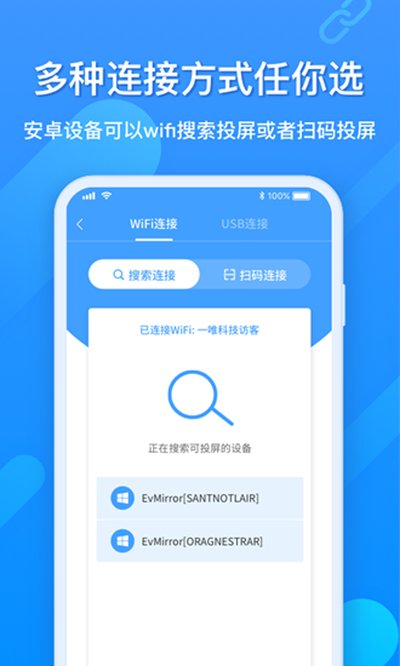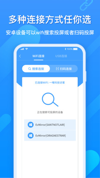 1. 多样的连接方式供你选择,安卓手机用户既可以通过Windows电脑搜索设备来连接,也可以直接扫描二维码,快速完成投屏。