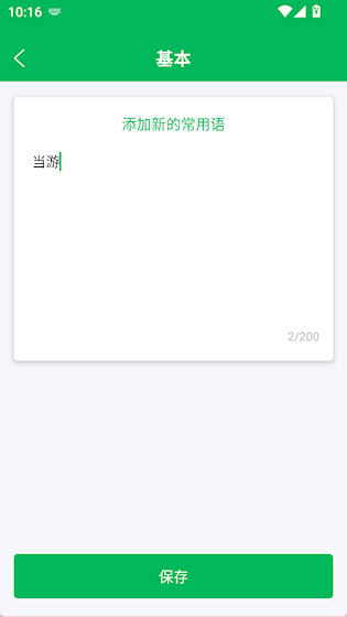 3、最后,轻点“添加常用语”,把你想加的话输进去,再点一下保存就大功告成了。