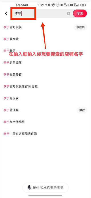 2、在搜索框里,输入你想找的那个店铺的名字。