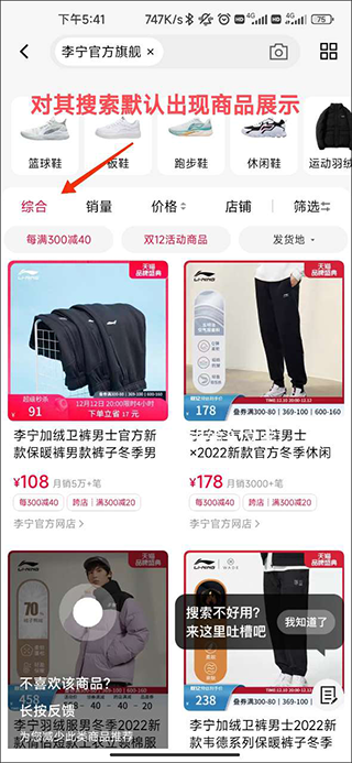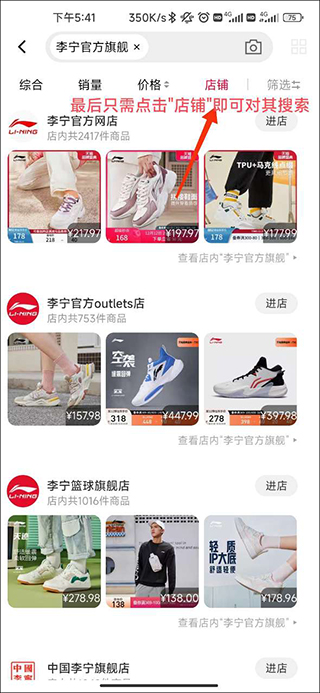 4、这时候别急,看到商品列表上面那个“店铺”选项没?点一下它,就能直接找到你要的店了。