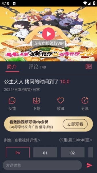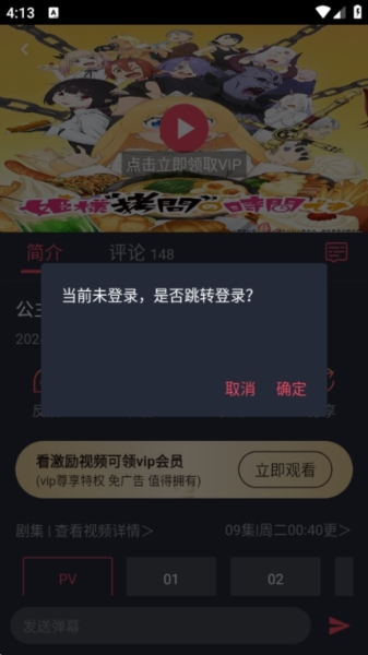 2、进入一部作品的详情页后,直接点击播放按钮即可,不用理会那个领取VIP的提示。