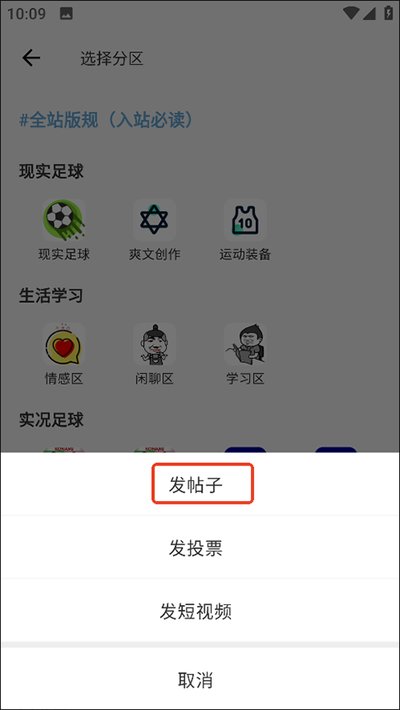 3、点完会让你选发到哪个板块,你是聊实况游戏,还是聊现实足球,自己选好分区,然后再点发帖。