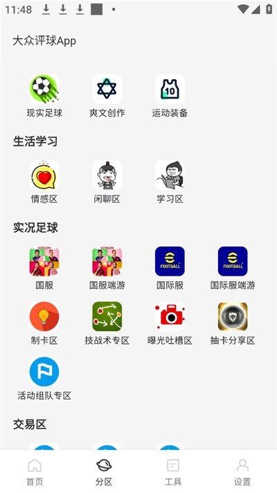 1、分区模块:这块儿就是老哥们吹水的地方,分了实况足球、国服国际服交易、战队招人、现实足球好几个区。平时讨论战术、晒阵容都可以在这儿搞。