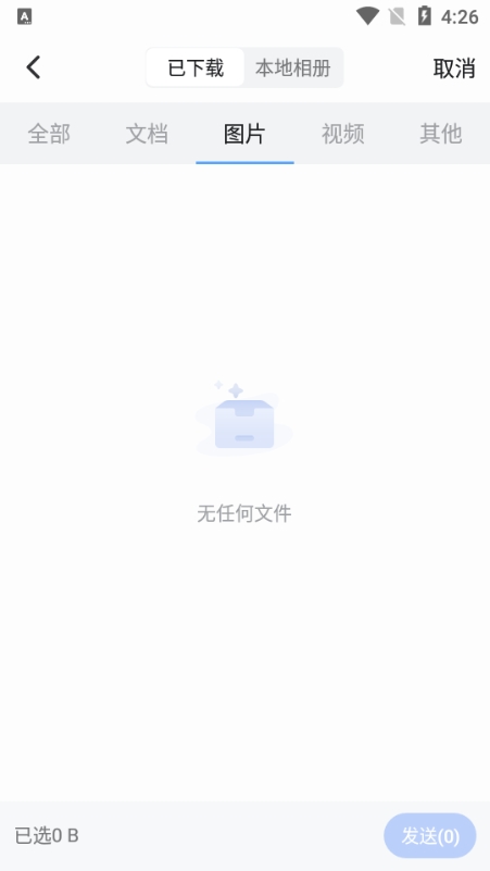 2、举个例子,点“文件”进去,可以直接筛选出图片类型,然后勾选你想发的就行。它还能让你快速跳转到手机相册里去选照片,很方便。