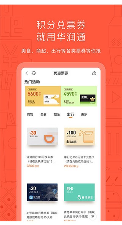 7、华润通联名卡:办了他们联名信用卡的话,每个月的消费额,到下个月会自动按2块钱积1分的比例换成积分。