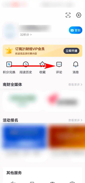 2、进入个人页面后,找到“评论”那一项,就是箭头指的地方,点进去。