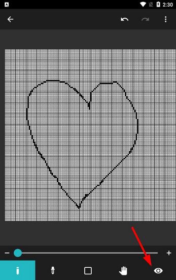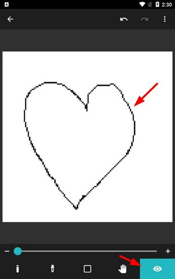 4. 这里画了一个简单的爱心作为示范。你可以随时点击右下角的眼睛图标,来预览一下你的画作在实际尺寸下的显示效果。