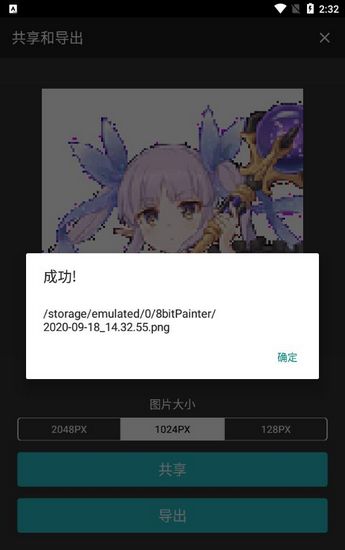 在导出作品时,你可以从三种不同的尺寸里选择一个。作品最终会保存为PNG文件,并且它还支持导出背景透明的PNG图像,这对于后期合成或者制作图标来说非常实用。