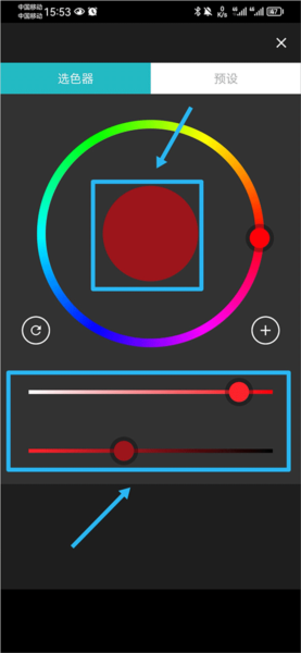 2、这时会打开一个调色板,你可以在色盘里挑选一个你中意的颜色。选好后,还能用下方的滑块来微调颜色的明暗度。所有都调整满意后,点击中间的颜色方块确认。