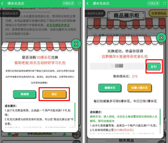 3、分享完之后切回好游快爆App,再点一次【兑换】。弹窗里的字最好看一眼,没问题就点【确定】,这样就换到手了。成功后直接点【复制】,把礼包码揣好,然后去游戏里粘贴兑换就行。