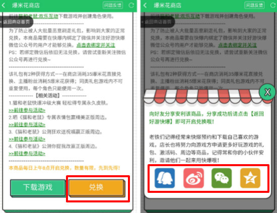 2、看到哪个好东西就点哪个,进入兑换详情页。点一下【兑换】,这时候会跳出来一个分享窗口,随便选个方式把这商品分享出去。