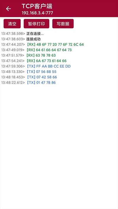 它最牛的地方在于,一台手机上就能同时模拟客户端和服务端。你可以开一个实例当服务器,再开几个当客户端去连它,只要协议、IP地址和端口号都对得上,通信立马就建起来了。撇开别的不谈,这APP支持UDP和TCP两种协议,服务端模式下还能同时管着好几个客户端连接。数据收发支持ASCII和HEX两种模式,随时能切换,数据用十六进制还是ASCII码看,你说了算。