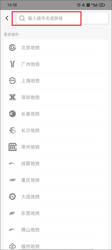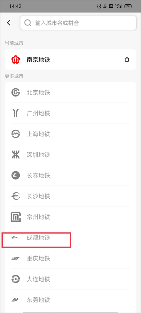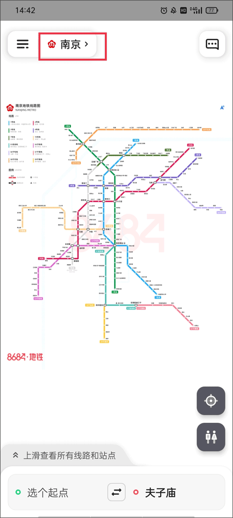 1、如果你想查别的城市的地铁线路,就点左上角那个显示当前城市名字的按钮。