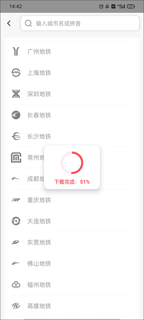3、数据包下载完之后,页面就会自动刷新,显示出新城市的地铁线路图了。