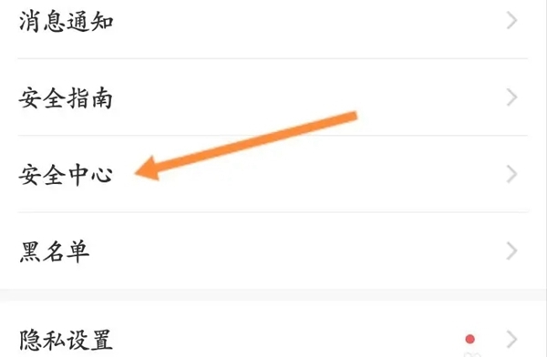 3、在设置页面里,最上面就能看到“安全中心”,点进去。