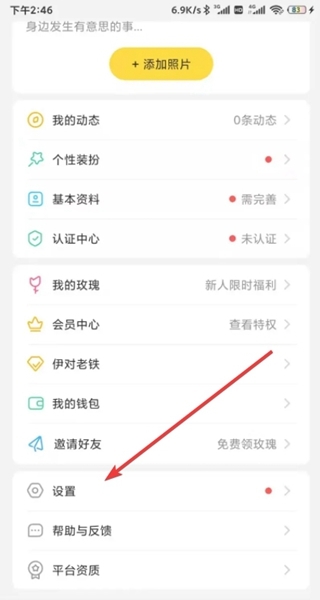 1、还是在“我”的那个页面,找到“设置”进去。看到截图里这个界面没,就是这里。
