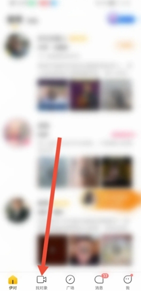 1、回到App的首页,找到那个大大的“找对象”按钮,点它。