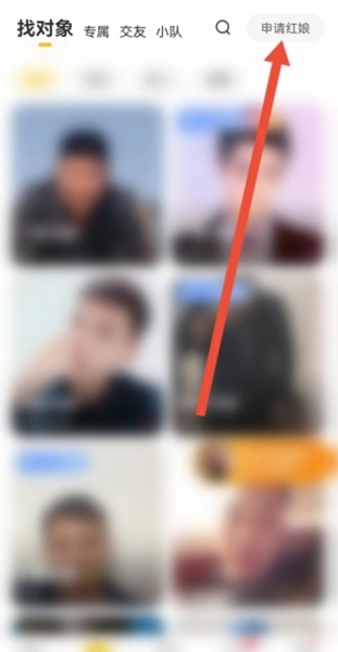 2、进入到找对象的界面后,看右上角,有个“申请红娘”的入口。