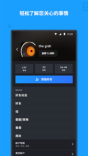 另外,这App最爽的一点就是,不管你是在挤地铁还是在蹲坑,随时都能掏出手机看看自己的游戏库,跟列表里的好兄弟吹吹牛逼,顺便刷刷最新的游戏新闻和更新公告。讲真,PC端再牛,也没法揣兜里带走,手机App就完美解决了这个问题。如果你是个PC游戏党,手机里没这玩意儿说不过去。还没装的赶紧去整一个。对了,这玩意儿在国内用需要配个加速器,biubiu之类的都行,自己看着办。