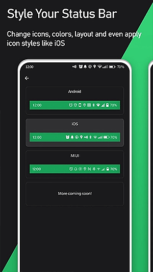 状态栏的定制化是它的看家本领。你可以选择完全不同的布局风格,给它换上自己喜欢的颜色,调整图标的显示顺序,甚至可以隐藏掉一些你不想看到的系统图标,比如NFC或者闹钟图标。