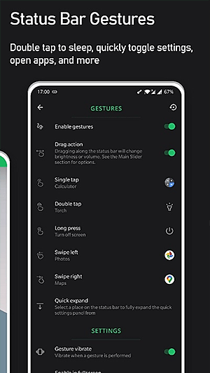 它还支持快速切换设置和手势启动应用。在状态栏上划一下打开手电筒,点两下打开计算器,这些操作都能通过简单的手势实现,把你常用的功能都安排上。