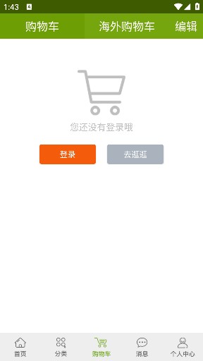 2、成功进来之后,你一眼就能看到底部的几个主要功能区,分别是“首页”、“分类”、“购物车”、“消息”和“个人中心”,设计得一目了然,想去哪里点一下就行。