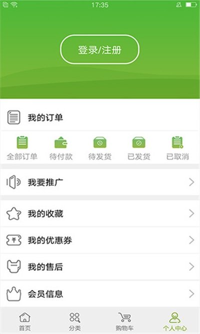 6、最后那个“个人中心”就是你的专属小天地了。这里管理着你的一切账户信息,比如查询所有的订单记录,看看哪些还没付款,哪些正在路上。包括你的推广信息和攒下的优惠券,也都在这里统一查看。