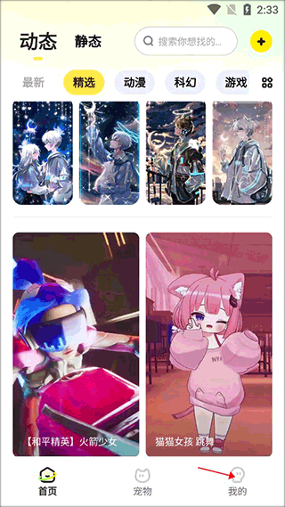 1、打开App,主界面就是壁纸瀑布流,先别瞎点,慢慢划,挑个自己看得顺眼的。看下面这张截图,就这感觉。