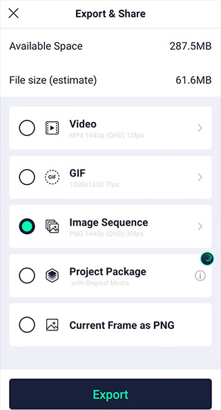 文件导出支持视频(Video)、动图(GIF)和图像序列(Image Sequence)这几种格式,供您按需选用。