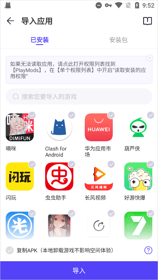 3、游戏成功导进去之后,就能直接从Playmods里启动了,而且还能用上那个悬浮窗菜单功能。不过得记着,这个需要你提前把应用的权限给开了才行。