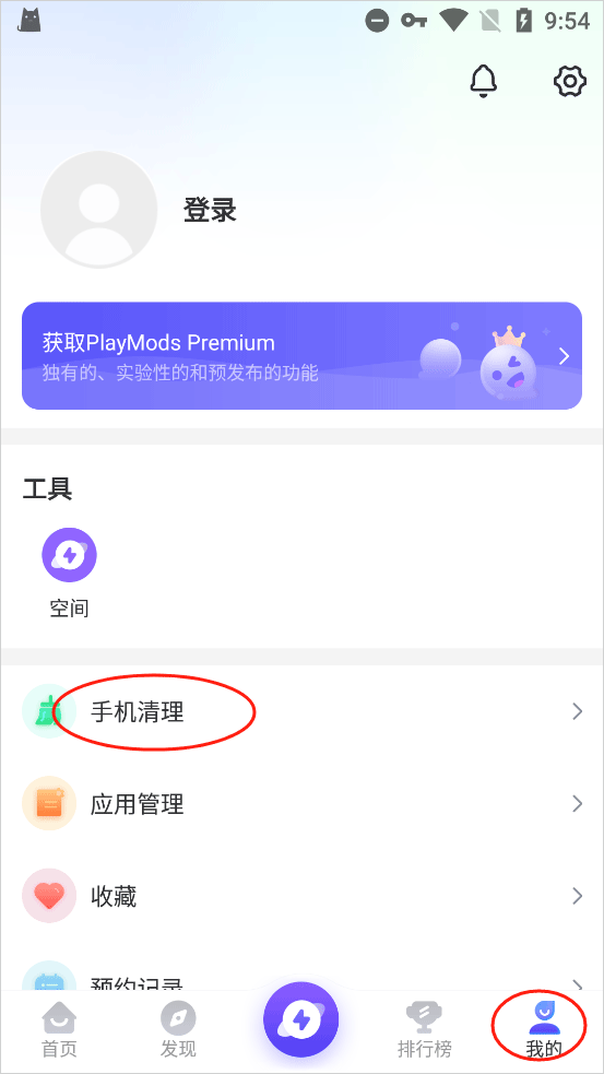 1、打开软件,点最下面导航栏里的“我的”,然后在里面找到“手机清理”并点进去。