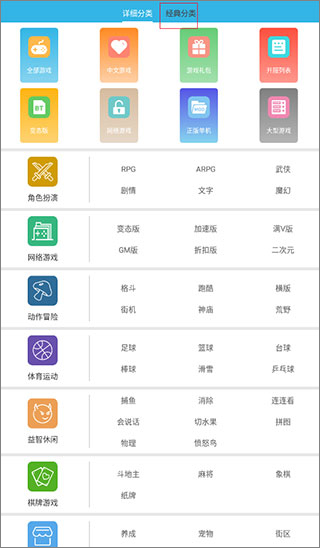2、进到游戏页面后, 往上看, 中间顶部有个“经典分类”, 戳它。