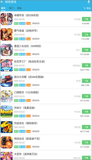4、点进去之后, 满屏幕都是各种修改过的游戏。找个你顺眼的, 直接点下载就完事了, 简单粗暴。