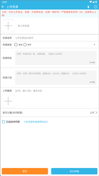 2、跳到这个界面后, 你把自己要传的App选上, 再把名字、介绍这些信息填利索了, 就能上传。大家看下面这张截图就明白了。