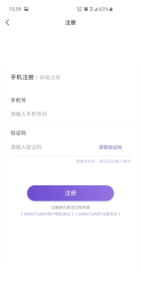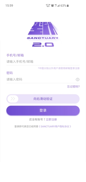 1、打开圣所APP,找到并点击“立即注册”按钮。