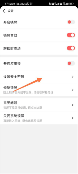 2、进去之后是个设置列表,在里面找到“设置安全密码”这一项,再点一下。