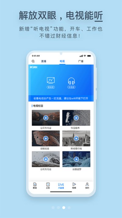 3、切换到“直播”菜单,能看到记者和知名专家的在线直播,实时解读市场信息。