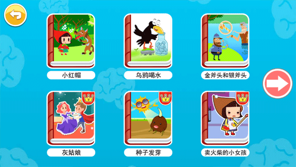 中英双语的绘本,给孩子磨耳朵、记单词句型用的。画面带点简单动画,发音也还行。收录的内容均为经典童话故事,例如《白雪公主》、《小红帽》以及《国王的新衣》。