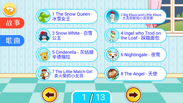 7、第四个是故事和歌曲。这里面存货不少,英文歌和故事都有,随便选一个它就自己开始放了。