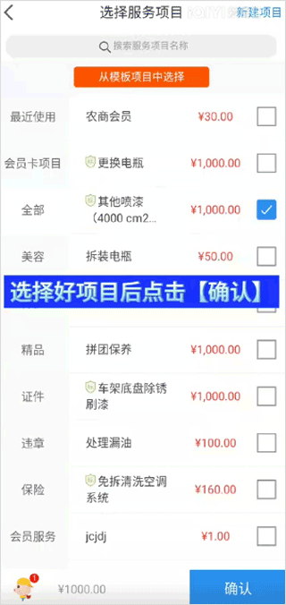 4、项目列表里勾选好需要的服务,点确定就添加上了。
