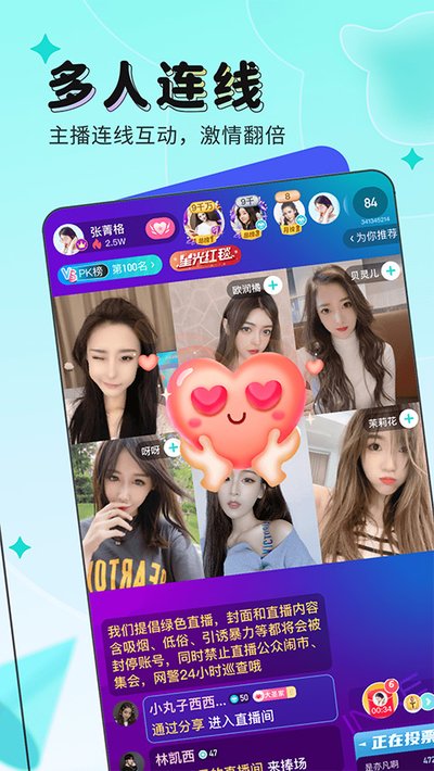 5.「直播互动」高颜值的主播多得是,随时都能在线上跟你实时互动聊天。