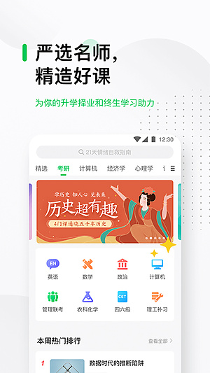 它还跟一些考研机构有合作,推出了一些考研辅导课。都是市面上口碑不错的老师来讲,帮你用更少的时间达到更好的复习效果。