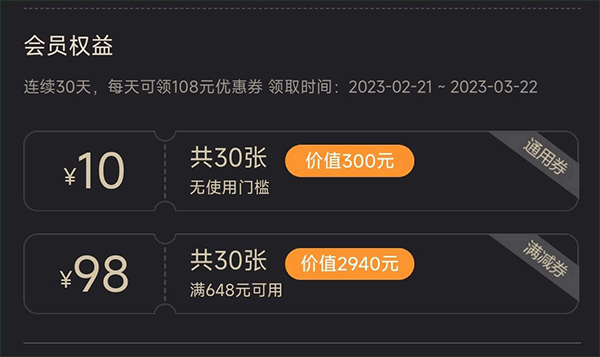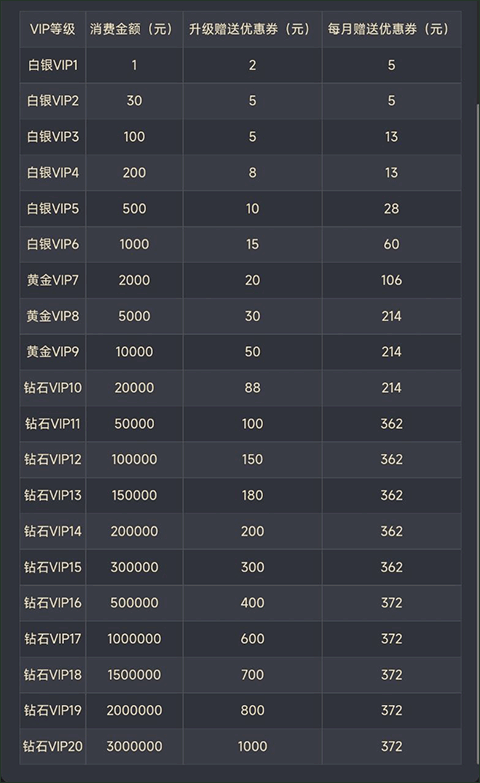 升级送的优惠券里,只有白银VIP1送的是满减券,其他VIP等级送的都是通用券。而每个月固定送的优惠券,则都是满减券。