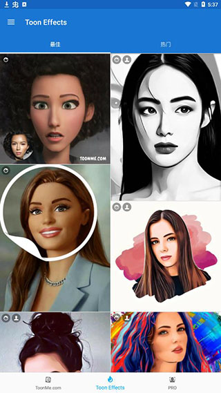 7、您可以逐一尝试“Toon Effects”选项下的各类趣味特效,以探索并发现每一种效果的独特魅力。