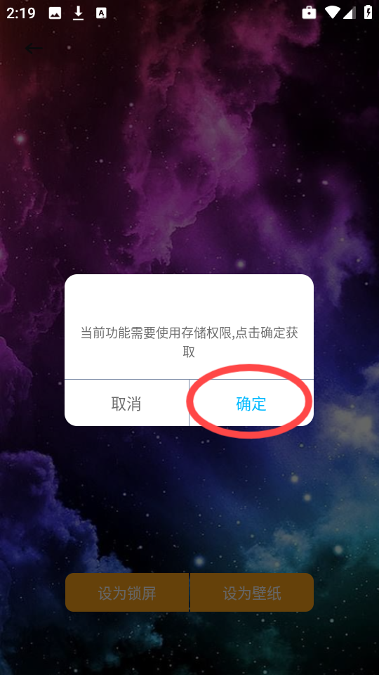 5、假如这是你第一次用它来设置壁纸,手机系统可能会跳出一个提示,需要你允许它访问一些必要的权限,跟着指引同意一下就行。
