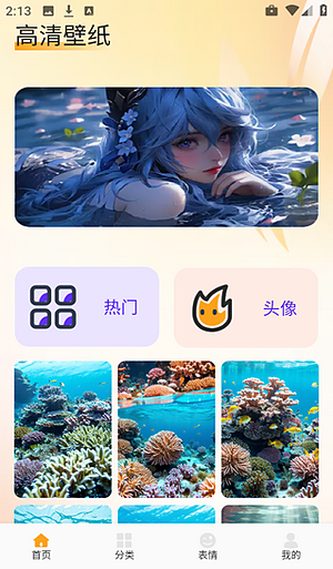 4、它提供的美化资源不只是壁纸那么单一,还同步收录了许多有趣的表情包,让你的美化选择更加多元化,聊天斗图和桌面美化两不误。